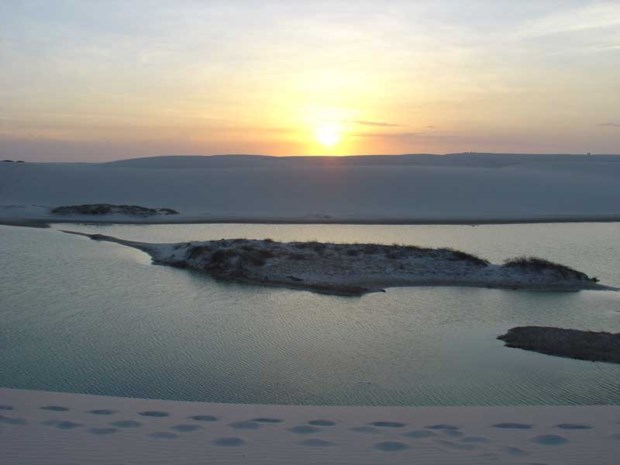 A partir de Barreirinhas, e até ao destino final, Fortaleza, o nosso transporte passou a ser uma caravana de nove jeeps. Começámos pelo Parque Nacional dos Lençóis Maranhenses. Sentimos a sua areia, não à distância, mas debaixo dos nossos pés, caminhando nas suas dunas e tomando banho nas mornas águas a espelharem o azul do céu. Fechámos em beleza a nossa aventura entre os lençóis, quando, no cimo de uma duna, assistimos ao pôr do sol que incendiou o horizonte com laivos de carmim.