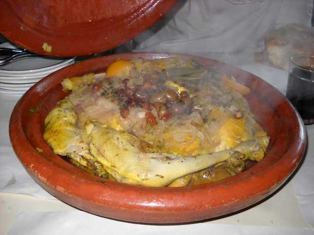 O prato popular é o tagine, feito com carne, excluindo a de porco, e com inúmeras especiarias. Acompanha com um pão fino e redondo que serve de talher.
