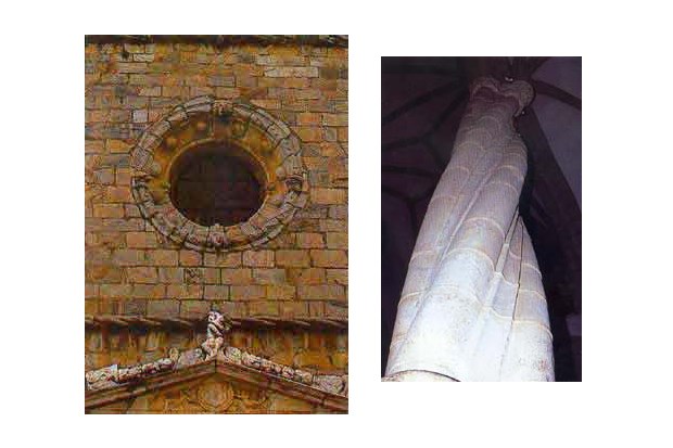 O interior consiste em três naves de diferentes alturas. São as oito colunas “cordiformes” que separam essas três naves. Os seus capitéis estão decorados com troncos entrelaçados.