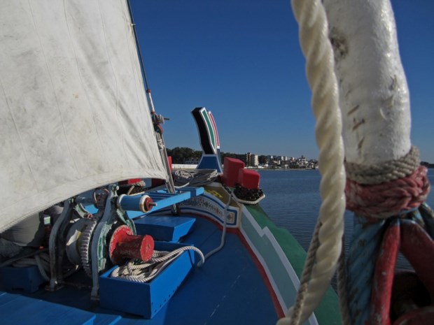 “Vamos um pouco até lá fora”, disse o mestre. “Lá fora” é fora do aconchego da baía, no Mar da Palha, onde as águas do rio Judeu, timidamente, se juntam às do rio Tejo, já no seu estuário, em campo muito mais aberto.Desligou-se o motor. Ficámos parados, ou quase. Senti-me a flutuar num colchão de ar gigante, suspenso, à deriva, mas seguro, confortável. Era bom estar ali. Ouvia-se o som discreto da água a bater nas madeiras cansadas do resiliente Amoroso, como se fossem palmadinhas meigas nas costas de um velho amigo que se abraça com ternura.