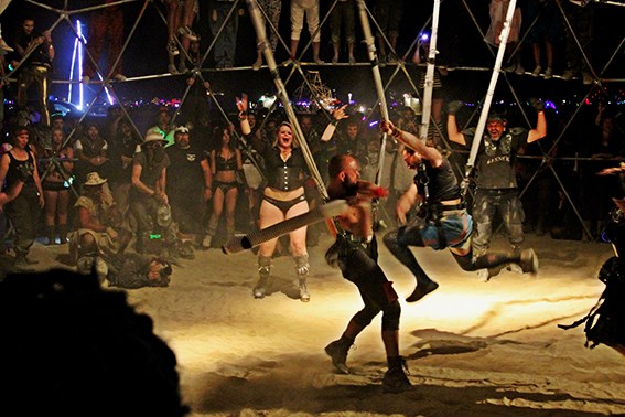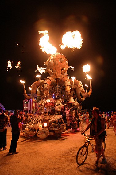 A partir dali tudo o que acontece no Burning Man não fica no Burning Man, mas é difícil de partilhar sem ser vivido. Não há necessidade de dinheiro, nem existe qualquer tipo de transação comercial dentro do espaço. A única transação é dar e receber. E a partilha acontece em qualquer momento e em qualquer lugar. “Mas não passaste fome?”, perguntam-me. A resposta é não. Precisamente por causa dessa partilha que surge a todo o instante. Há sempre alguém que te convida para beber ou petiscar durante o teu passeio de bicicleta. E, garanto, logo a seguir a água e comida, a bicicleta é o bem mais essencial para participar neste evento. É o meio de transporte mais utilizado e que permite fazer um efectivo reconhecimento do local. Sem ela dificilmente teria tido tempo suficiente para explorar todo o espaço. Além disso, pode e deve ser enfeitada de forma criativa e tornar-se um meio divertido de participação.
