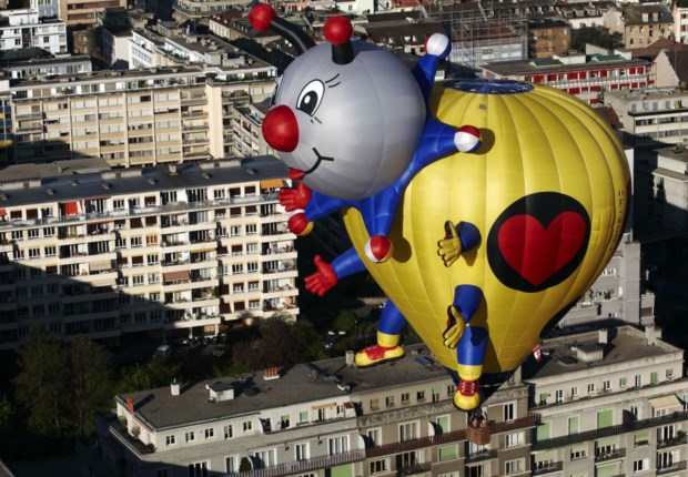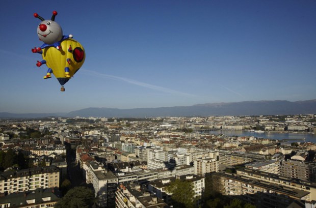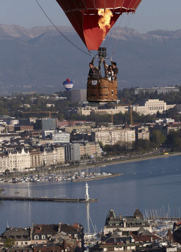 Um festival de evasão e panorâmicas com trinta balões de ar quente a sobrevoar a suíça Genebra no domingo. Foi o 5.º Festival Montgolfiades com os aviões a levantarem voo de parques da cidade e aterrando depois em campos vizinhos. Os participantes tiveram direito a vistas privilegiada sobre Genebra e os rios que a circundam ou o lago Léman. São essas vistas privilegiadas que partilhamos. Respire fundo. Denis Balibouse/Reuters