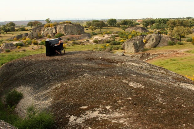 Dois artistas franceses. Um piano. Uma bicicleta solar. Uma odisseia pela Europa: há mais de um ano que Christophe Clavet e Lou Nils pedalam pelo continente e param onde lhes apetece. Sacam de um verdadeiro piano e a pianista começa a tocar. Sempre em locais inesperados. Durante alguns meses estiveram em Portugal. Contamos a história na Fugas de 11 de Junho. Esta é uma fotogaleria da autoria dos artistas. Um intróito para a Pianotrip que pode ser apreciada globalmente em http://www.pianotrip.com.