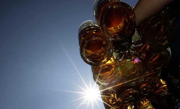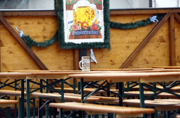 Uma caneca solitária e há uma razão para isso: houve chuva forte durante o fim-de-semana, o que não vai nada bem com esplanadas de cerveja. Michael Dalder/Reuters