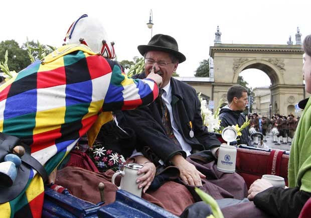 O presidente da câmara de Munique, Christian Ude, na parada da Oktoberfest, não se faz rogado a participar nas brincadeiras do desfile. Michaela Rehle/Reuters
