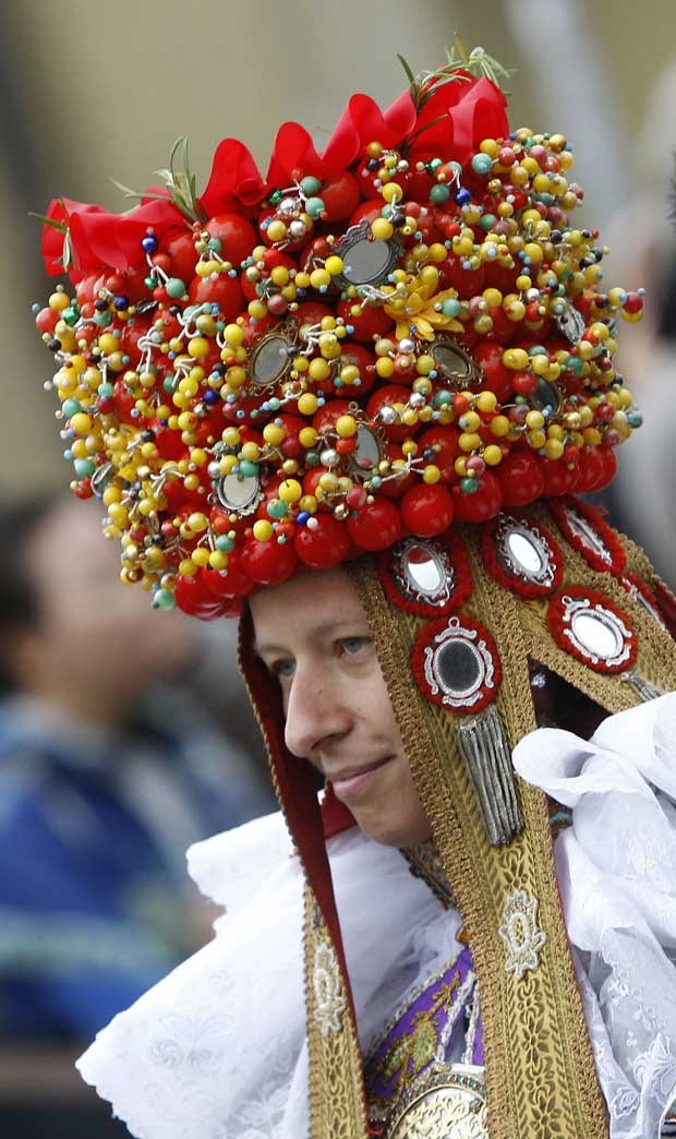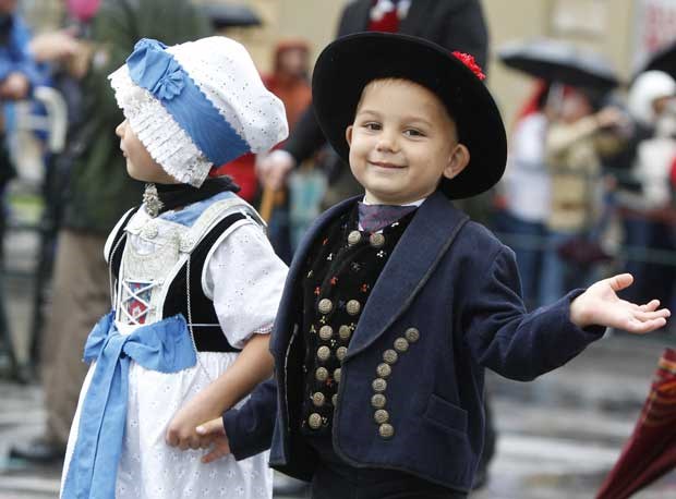Festejando com traje tradicional. Michaela Rehle/Reuters