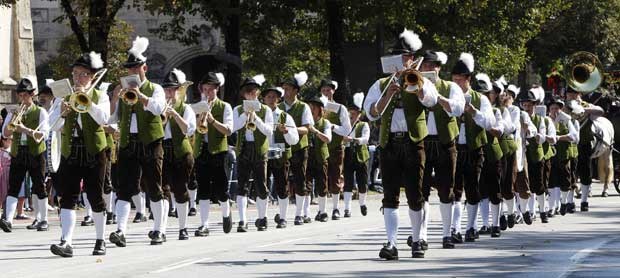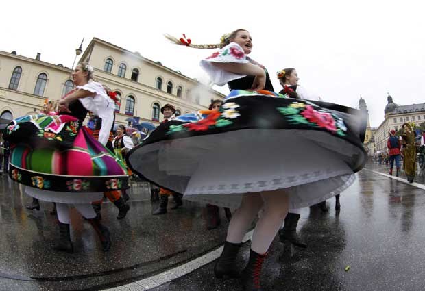 Danças e cantares na parada da Oktoberfest. Michaela Rehle/Reuters