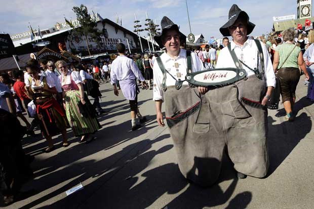 Uma versão 2-em-1 dos tradicionais calções de couro bávaros. Kai Pfaffenbach/Reuters