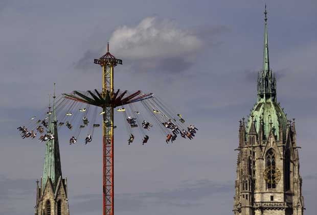 Cerveja e voltas e mais voltas em Theresienwiese. Pode não ser boa mistura... Kai Pfaffenbach/Reuters