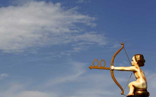 Será a cerveja amiga do amor? Este cupido dá a entender que sim mas afinal aponta serve de indicação é para as casas de banho. Kai Pfaffenbach/Reuters