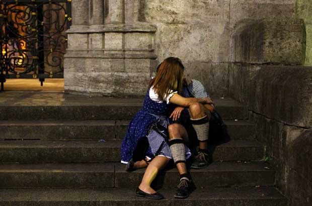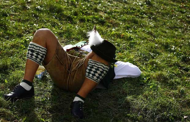 Um momento de descanso, antes da festa, e da cerveja, prosseguirem. Kai Pfaffenbach/Reuters