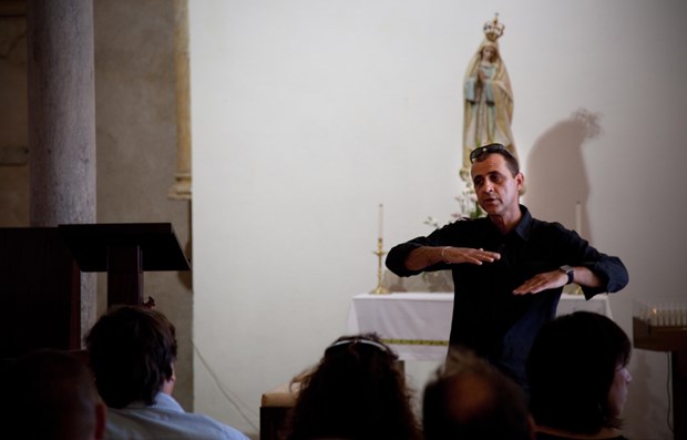 O especialista Fernando Martins explica as sobreposições históricas na antiga mesquita, actual igreja Matriz. Marco Vilela