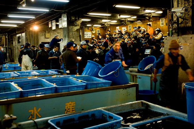 Uma das zonas de licitação do mercado de Tsukiji. Paulo Barata