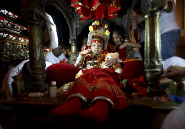 Um deus vivo: Sambeg Shakya, de seis anos, é transportado durante o festival Indra Jatra, em Katmandu. Shakya foi declarado, no ano passado, Ganesh, deus da prosperidade.