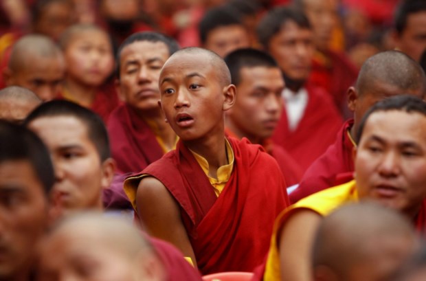 Um jovem monge numa cerimónia mundial em Katmandu pela paz no mundo. Fevereiro, 2011.