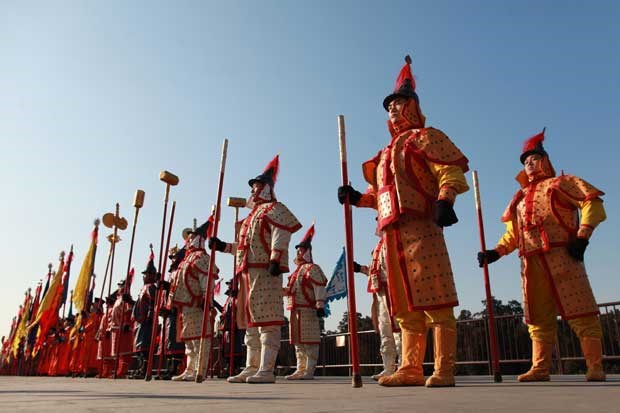 CHINA. Representação de soldados do tempo da Dinastia Qing, em Pequim Ed Jones/AFP