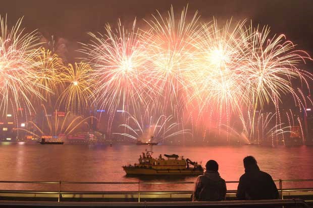 CHINA. Pirotecnia sobre o porto de Victoria, em Hong Kong Aaron Tam/AFP