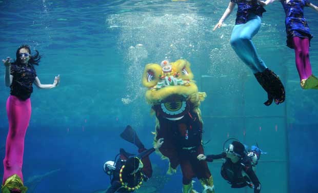 INDONÉSIA. Uma celebração do novo ano em teatro subaquático, no parque Ancol, Jacarta Adek Berry/AFP