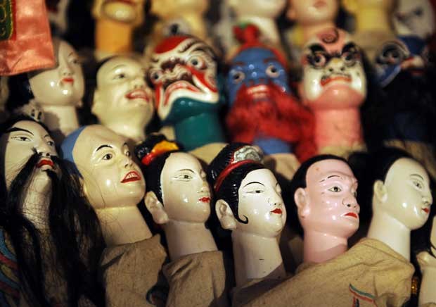 INDONÉSIA. Personagens de um teatro de marionetas chinês, em Jacarta, aguarda o momento de entrar em cena Adek Berry/AFP