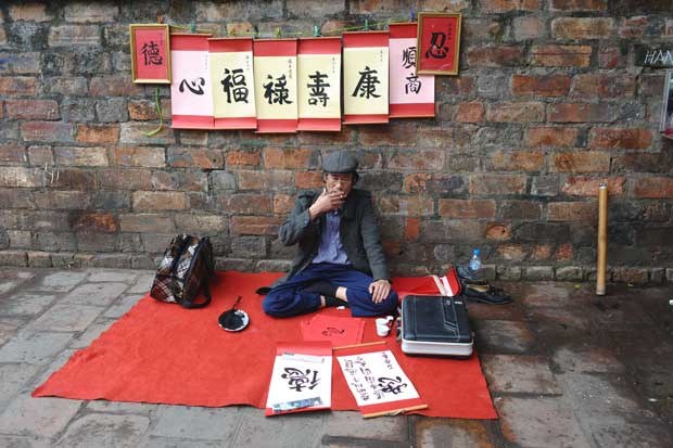 VIETNAME. Um calígrafo aguarda clientes perto do templo da Literatura em Hanoi Hoang Dinh Nam/AFP