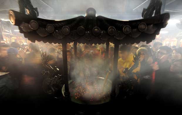TAIWAN. Cerimónia de queima de incenso num templo Hsingtien em Taipé Sam YEH/AFP