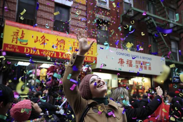 EUA. Chuva de confetti na Chinatown, Nova Iorque Spencer Platt/Getty Images/AFP