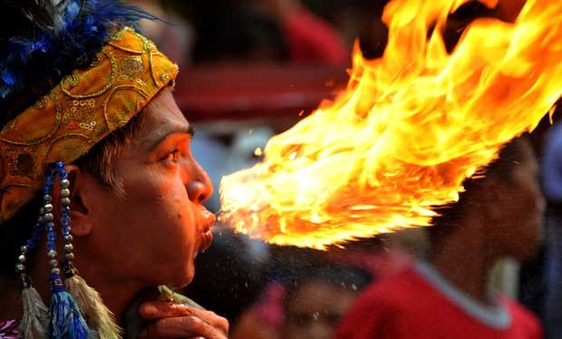 FILIPINAS. Um cuspidor de fogo na Chinatown de Manila Noel Celis/AFP