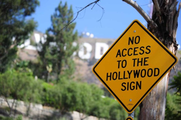 Um aviso aos turistas: por este caminho, não há acesso ao letreiro de Hollywood. Ávidos de chegarem às grandes letras para a foto a que têm direito, milhares de visitantes invadem as redondezas e os caminhos. Robyn Beck/AFP