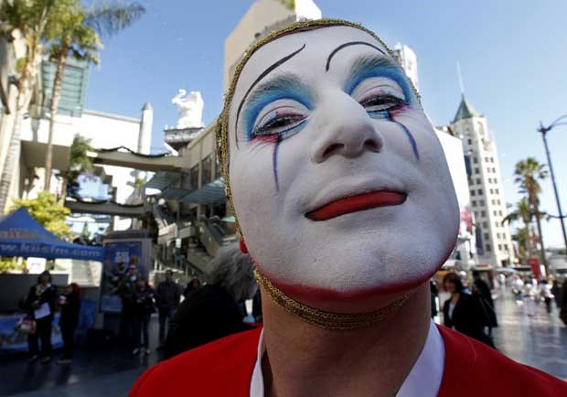 Na Hollywood Boulevard, cada um tem a sua máscara muito própria. No caso, muito profissional: é um elemento do Cirque du Soleil Fred Prouser/Reuters