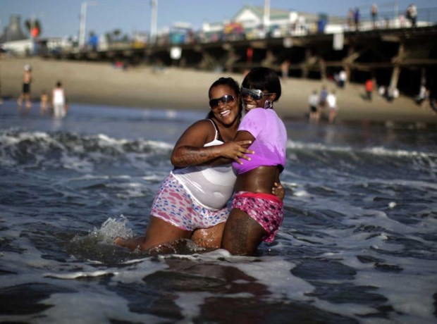 Diversões na praia de Santa Monica, num dia em que os termómetros atingiam os 45ºC. Lucy Nicholson/Reuters
