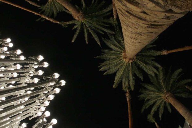 A noite de LA, palmeiras e luz: o contraste é conseguido durante a exibição de uma instalação artística de Chris Burden, "Urban Lights" Lucy Nicholson/Reuters
