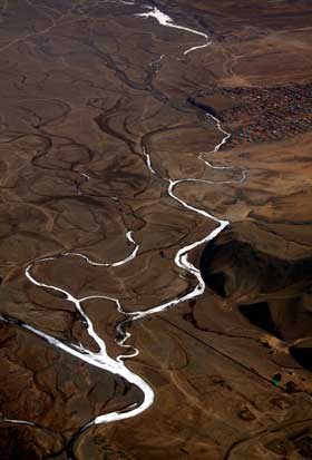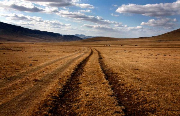 Sinais da modernidade em paisagem eterna: marcas de pneus cortam a pradaria em direcção às montanhas David Gray/Reuters