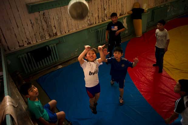 Num ginásio da capital, os pequenos mongóis jogam basquete Kieran Doherty/Reuters