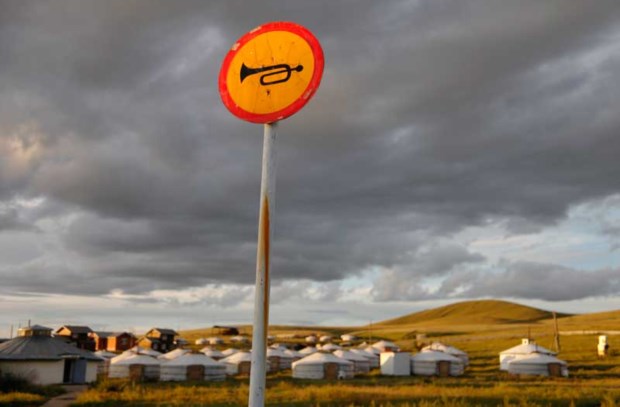 Um sinal "sonoro" num campo de "ger", as tradicionais tendas mongóis, no Parque Nacional de Terelj Laurence Tan/Reuters