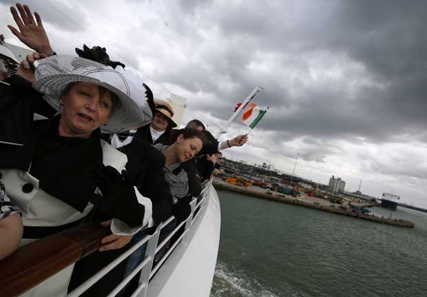 O momento em que o Titanic Memorial Cruise deixou o porto em Southampton, Inglaterra Reuters