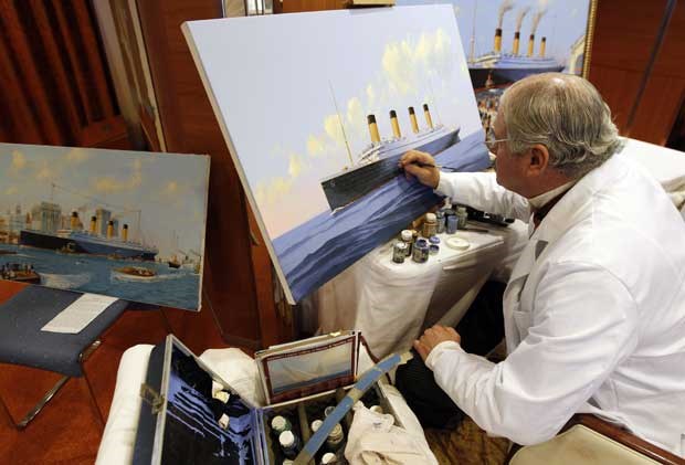 Durante o cruzeiro, o artista americano James Allen Flood pintou quadros do verdadeiro Titanic Chris Helgren/Reuters