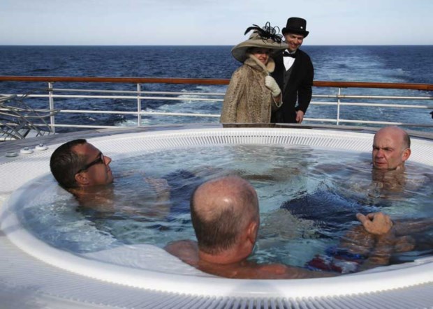 Jacuzzi em alto mar. Ao fundo, um casal canadiano vestido como há um século Chris Helgren/Reuters