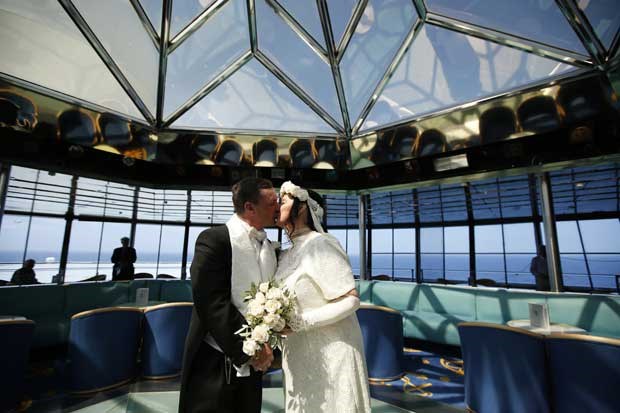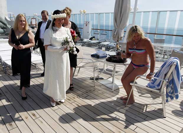 Derek e Lynn Chambers (de Belfast, Irlanda) celebraram o seu casamento no cruzeiro Chris Helgren/Reuters