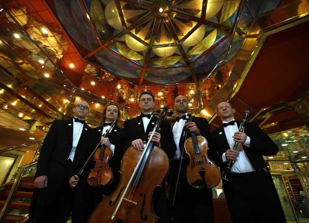 E a banda continuou a tocar, reza a lenda. Aqui, o quinteto belga Grupetto, que actuou numa cerimónia de homenagem às vítimas do naufrágio. A cerimónia decorreu no ponto do afundamento Chris Helgren/Reuters