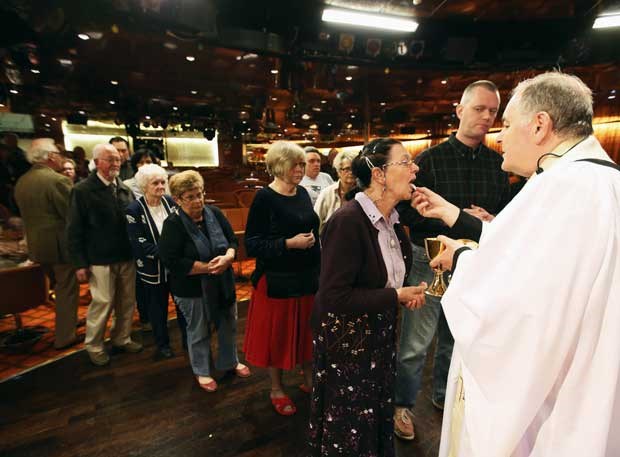 Missa de Páscoa a bordo do navio Chris Helgren/Reuters