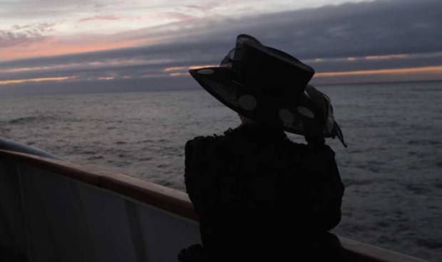 A australiana Helena Beaumont-Jones observa o mar ao pôr-do-sol no momento em que o navio passa o ponto em que naufragou o Titanic Chris Helgren/Reuters