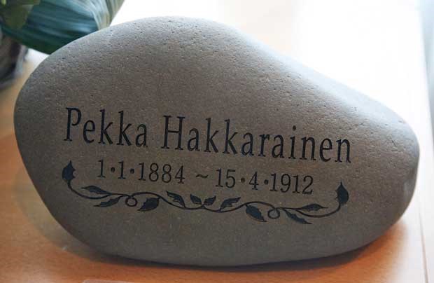 Uma pedra vista no cruzeiro e que homenageia Pekka Hakkarainen, uma passageira finlandesa que morreu no naufrágio do Titanic. Chris Helgren/Reuters