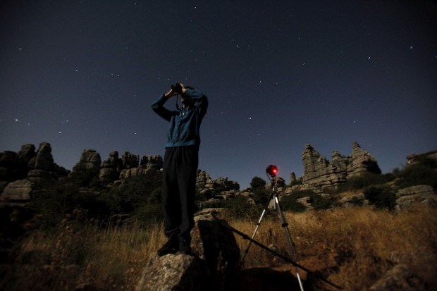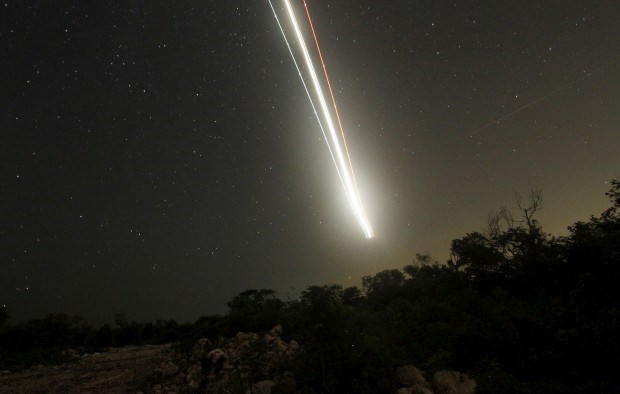 Uma longa exposição durante uma chuva de Perseidas perto de Mitzpe Ramon, Israel. A 13/08/2012 Amir Cohen/Reuters