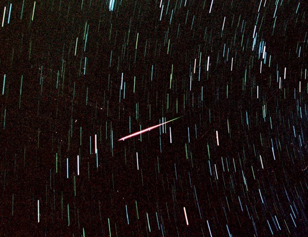 Uma foto tirada com película 400 ASA e com uma exposição de 10 minutos: no caso, um meteoro Leónida cruza o céu no deserto jordano. 12/08/2002 Ali Jarekji/Reuters