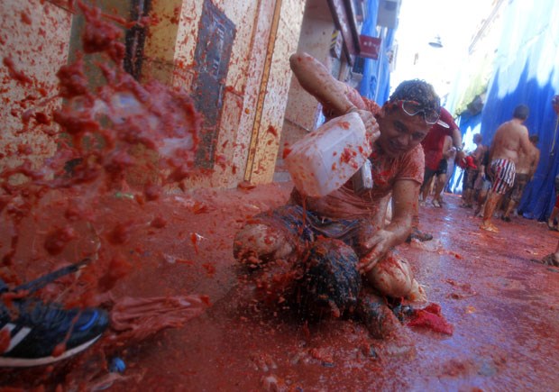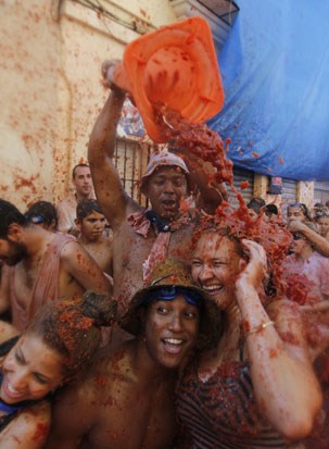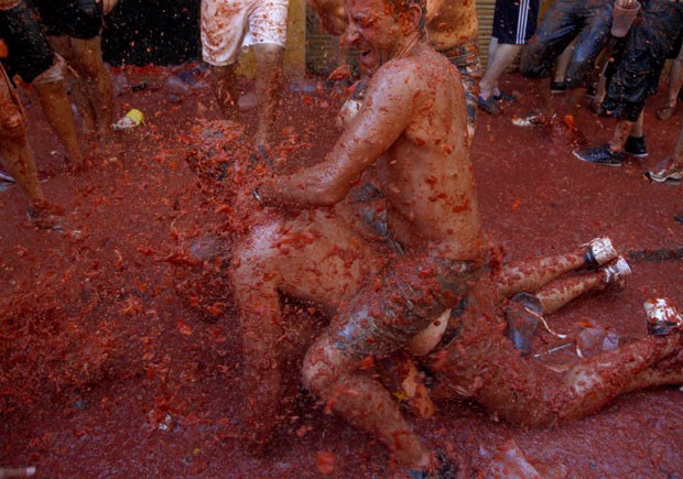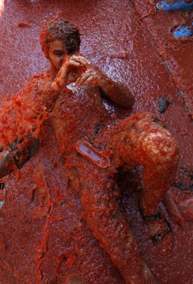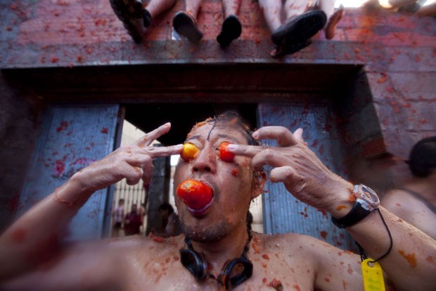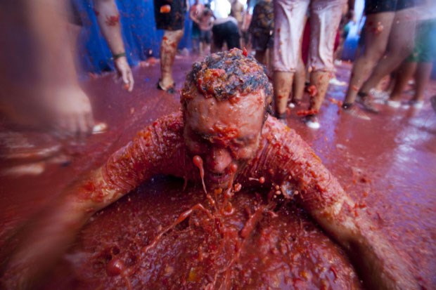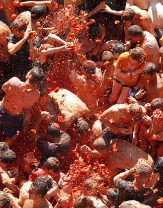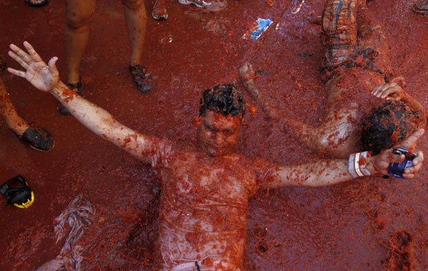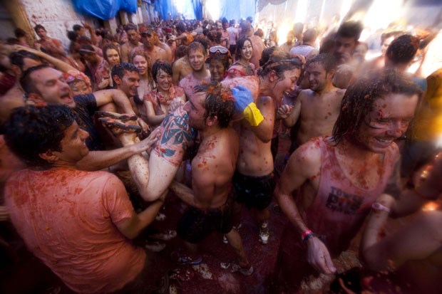 A Tomatina 2012 realizou-se a 29 de Agosto e bateu recordes: mais de 50 mil visitantes lançaram pelos ares mais de 120 mil quilos de tomates. O detalhe está no lucro turístico: contas feitas, serão mais de 300 mil euros a entrar naquela pequena cidade espanhola, por um dia transformada num gigantesco gaspacho humano, graças à guerra dos tomates. Fotogaleria de Fugas