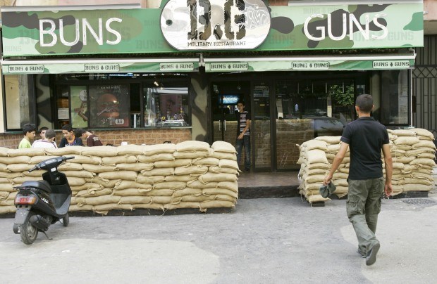 Este já encerrou, mas o "Buns and Guns" (algo como Pães e Armas) ainda mexe com as memórias. Que melhor temática para um restaurante numa Beirute habituada à guerra? Terraço protegido por sacas de areia, empregados e chef vestidos com roupa militar e o slogan era "uma sanduíche pode matar-te"... Cynthia Karam/Reuters