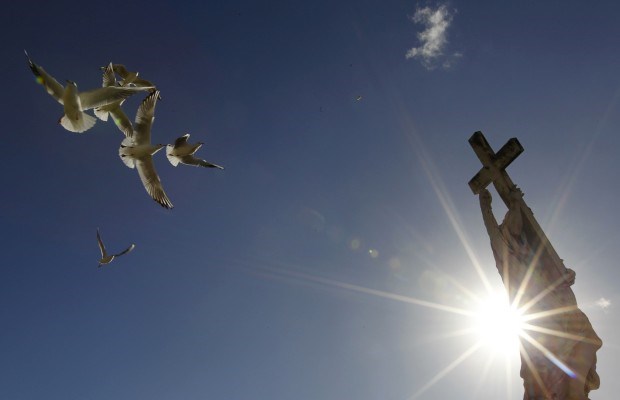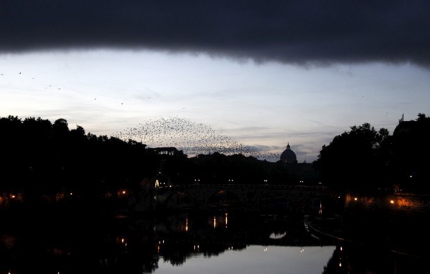 Voo de gaivotas sobre a estátua do Anjo, de Ferrata, na ponte de Sant'Angelo Alessandro Bianchi/Reuters