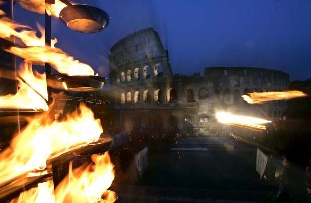 Uma cruz arde frente ao Coliseu na tradicional Via Crucis Max Rossi/Reuters