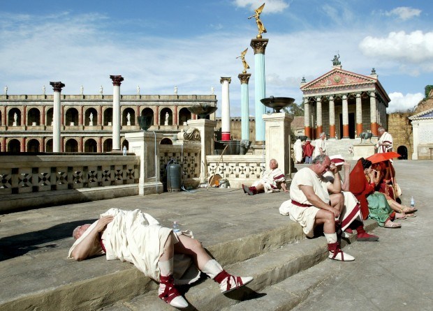 Actores vestidos à Roma Antiga descansam numa pausa de gravações na Cinecittà Alessia Pierdomenico / Reuters