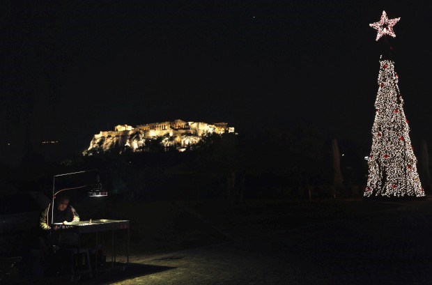 Em Atenas, árvore de Natal e Acrópole iluminadas Yannis Behrakis/Reuters